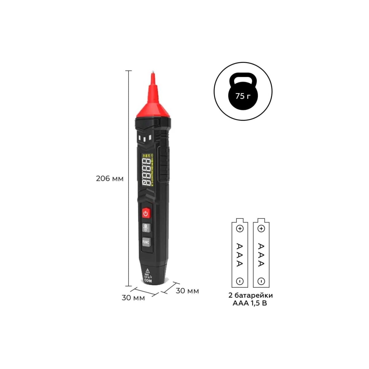 -Питание: 2*1,5В ААА (в комплекте)