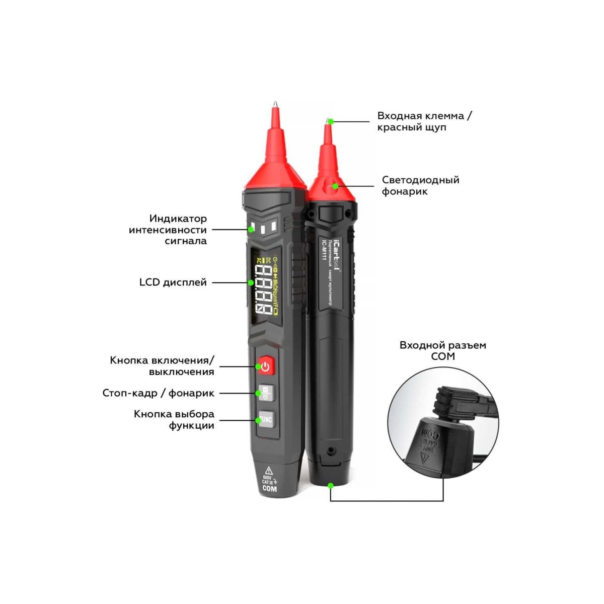-Светодиодная подсветка места измерения (в направлении центрального щупа)