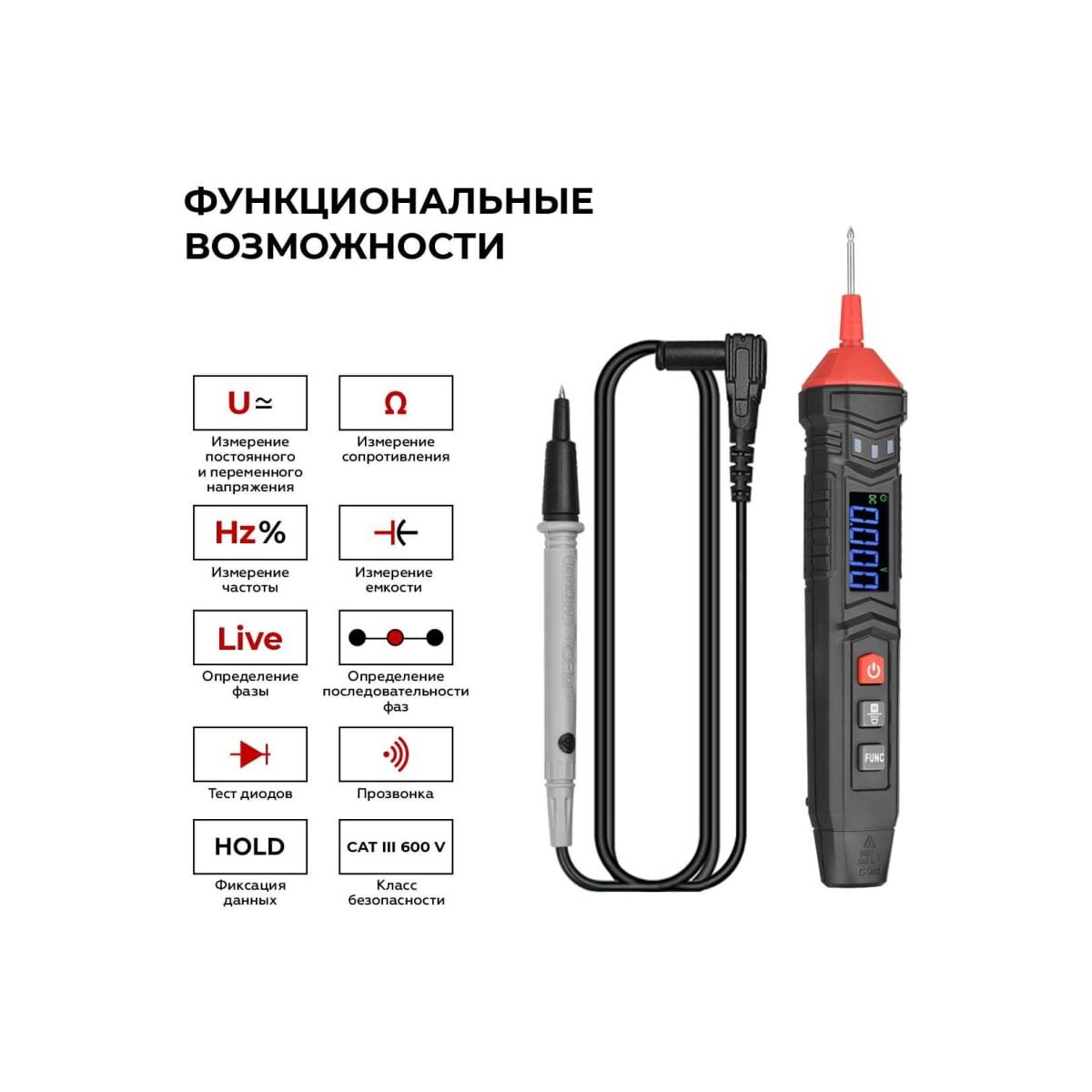 -Измерение постоянного/переменного напряжения в диапазоне 4 – 600В