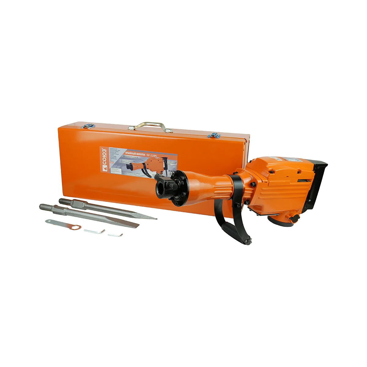 Технические характеристики Союз ПЕС-2520РБВид двигателящеточныйМощность2000 ВтТип патронашестигранныйУстройство шестигранникас проточкойСила удара55 ДжЧисло ударов при номинальном числе оборотов1400 уд/минЭлектр. регулировка оборотовнетПлавный пускнетПодсветканетЛегкий доступ к щеткамдаПика в комплекте1Зубило в комплектенетУпаковкакейсГабариты без упаковки640х230 ммВес нетто20 кгРазмер шестигранника30 ммДлина кабеля3 м
