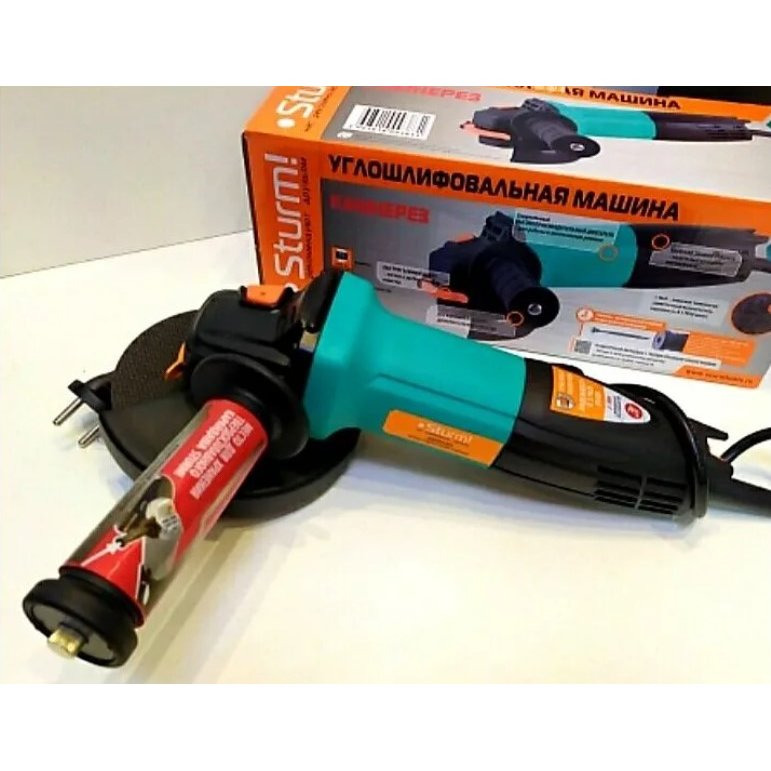 Углошлифовальная машина Sturm! AG9012TJ отличается универсальностью эксплуатации и простотой использования. У электроинструмента удобная тонкая рукоять диаметром в 7 см и с резиновыми вставками. Двигатель угловой шлифовальной машины полностью защищен от пыли, что способствует продлению срока службы. Статор и ротор имеет лаковое покрытие обмотки, это также увеличивает срок эксплуатации машины. Японская система защиты от случайного включения УШМ существенно повышает уровень безопасности в ходе выполнения манипуляций. На рукояти расположен твердосплавный карандаш, с помощью которого легко наносится разметка на любые типы поверхностей. Кожух для защиты снимается довольно быстро, что очень удобно. В конструкции углового инструмента предусмотрены шестерни и подшипники высокого качества, которые обладают оптимальной износостойкостью и долговечностью. Ротор имеет специальную нить, предотвращающую попадание внутрь электрического инструмента частиц мелкого абразива.