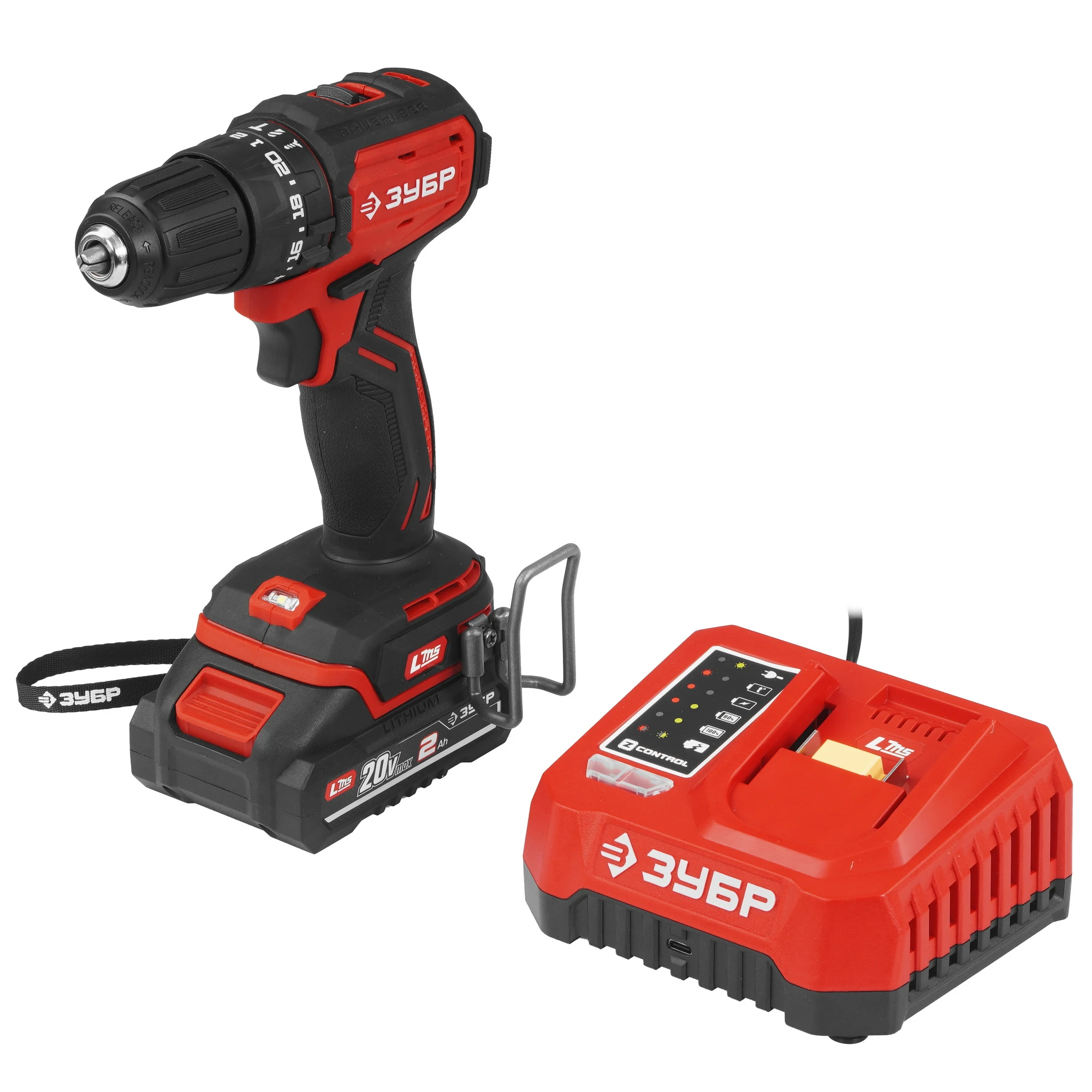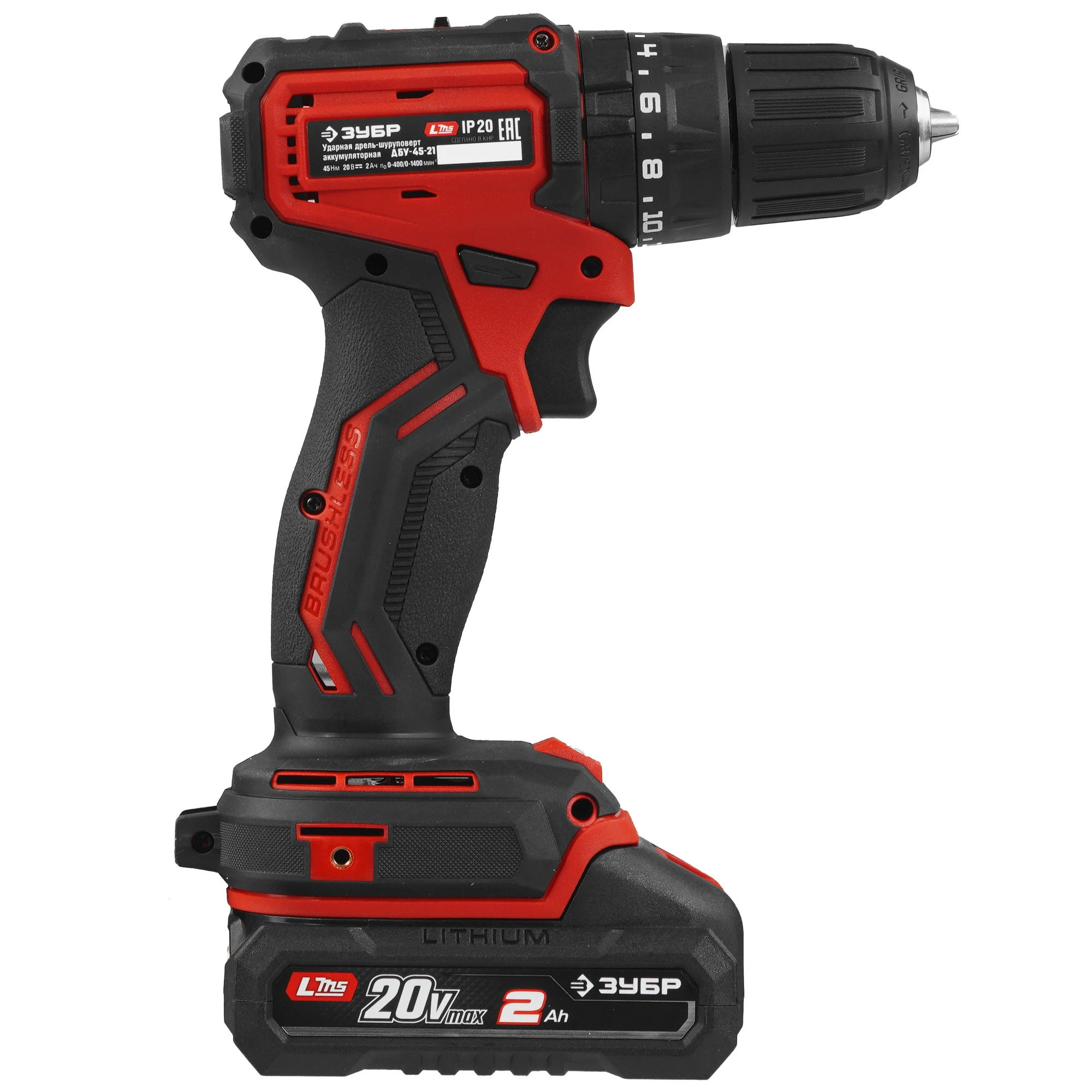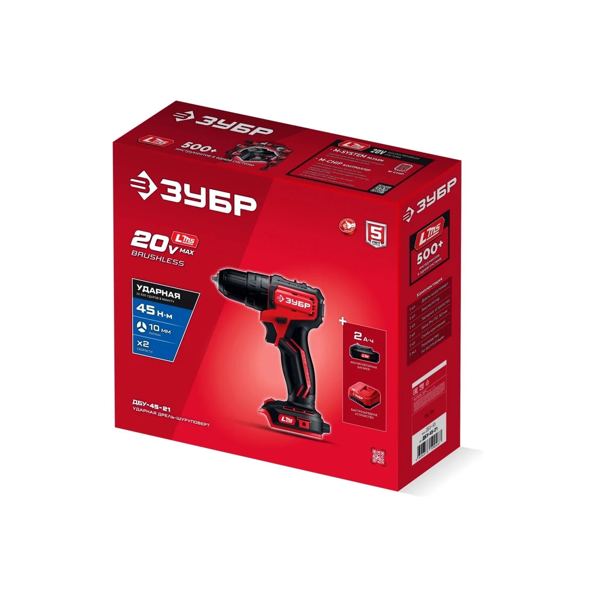 ЗУБР 20 В, 45 Н·м, 1 АКБ LMS (2 А·ч), бесщеточная ударная дрель-шуруповерт ДБУ-45-21 - инструмент из единой аккумуляторной системы LMS для 500+ инструментов.