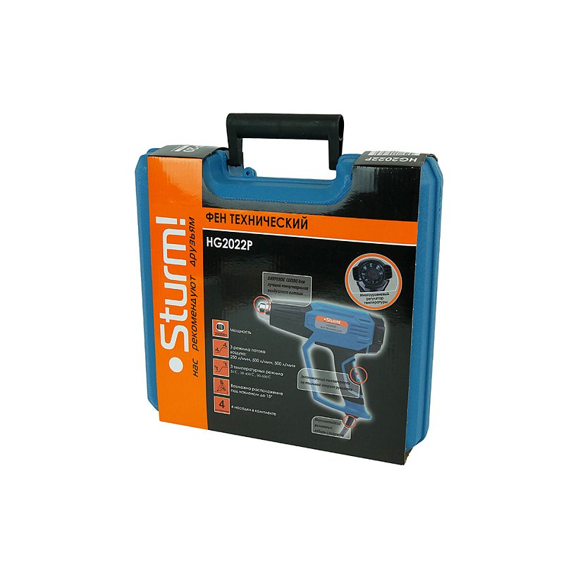 Комплектация:Фен, 4 сопла: стеклозащитное, редукционное, плоское, рефлекторное, инструкция по эксплуатации, кейс