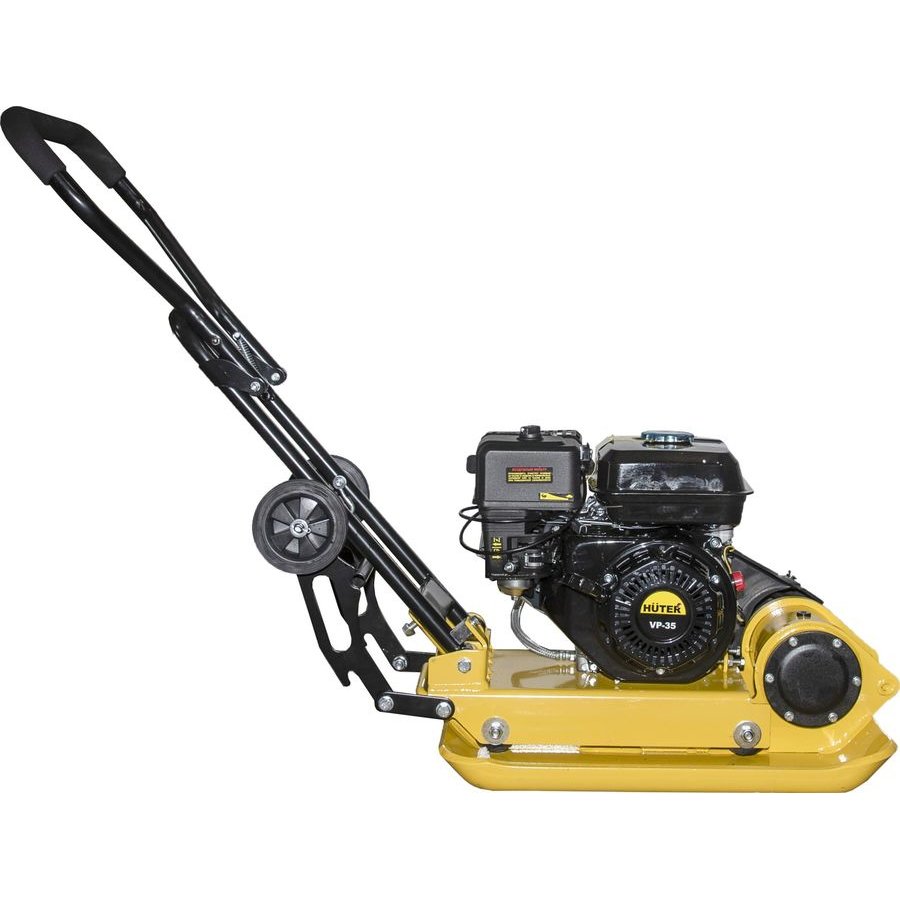 Двигатель виброплиты в сборе с основанием, рукоятка управления, подкатные колеса, крепежный комплект, паспорт изделия.