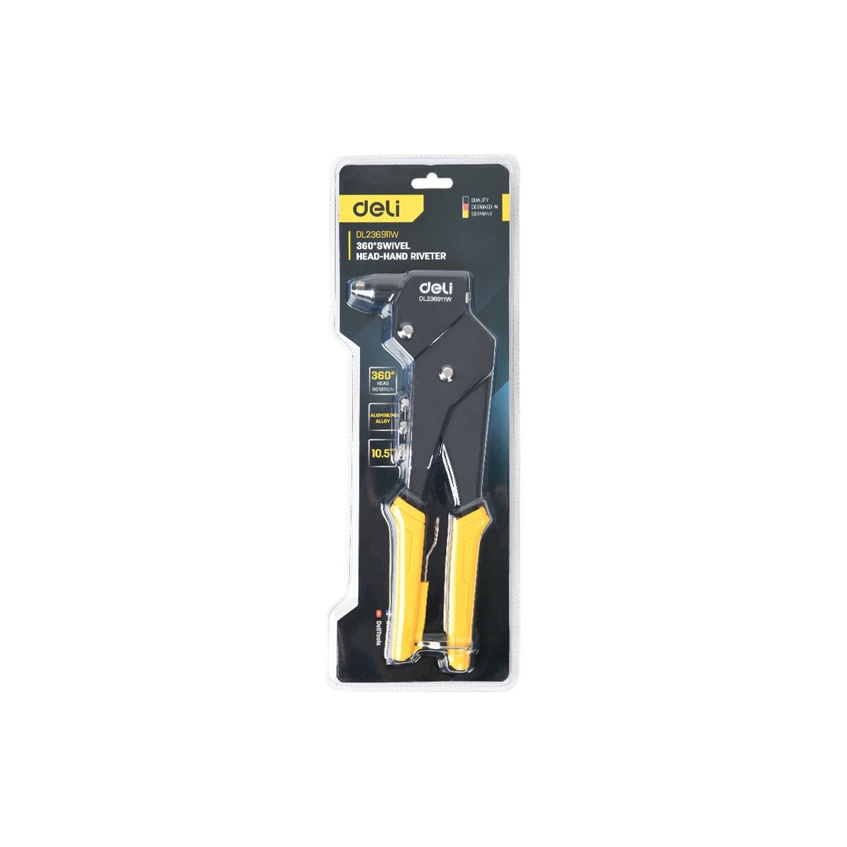 Ручной заклепочник Deli DL236911W - это профессиональный инструмент, который предназначен для установки вытяжных заклепок диаметром от 2,4 до 4,8 мм.