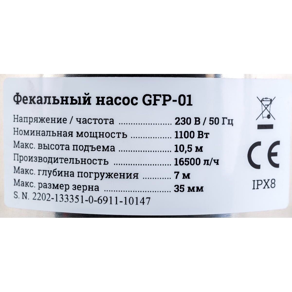 Фекальный насос Gigant изготовлен из нержавеющей стали, благодаря чему отличается прочностью, устойчивостью к образованию коррозии и механическим воздействиям. Для защиты от работы вхолостую предусмотрен внешний поплавковый механизм, который отключает и включает насос в зависимости от уровня воды.