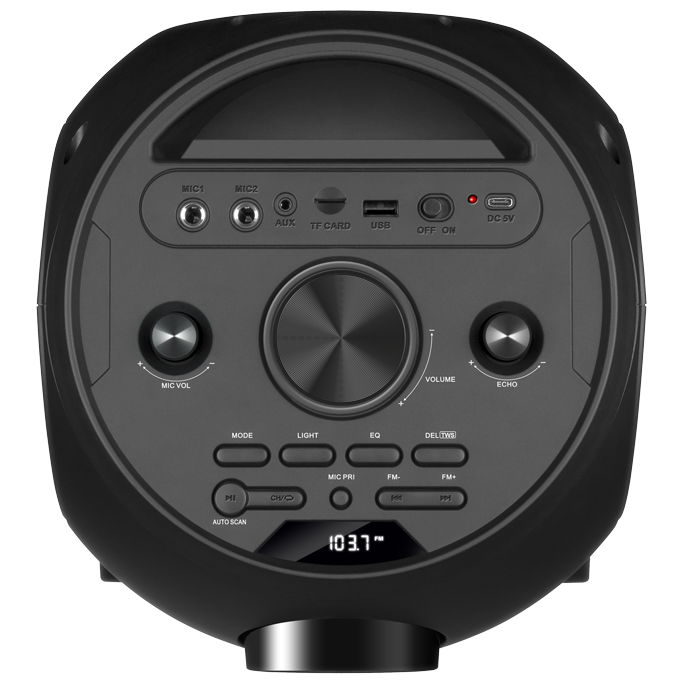 FM-радио, дисплей, поддержка microSD, ручка, световые эффекты