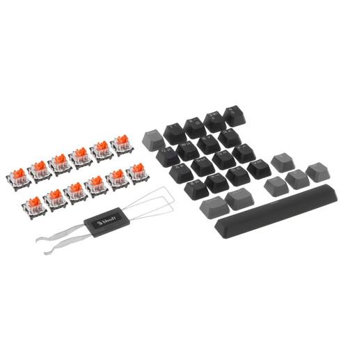Система Hot Swap предусматривает простую замену переключателей с помощью специального инструмента. В комплекте поставляются дополнительные переключатели и кейкапы. Для подключения A4Tech Bloody S98 Sports Red к ПК применяется кабель с разъемом USB.