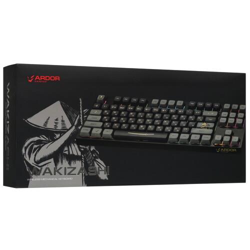 Для погружения в игровой процесс реализована подсветка RGB с многоцветной палитрой. В проводном режиме клавиатура подключается по кабелю с разъемом USB. Для беспроводной синхронизации предусмотрены 2 способа: на радиоканальной частоте 2.4 ГГц и по Bluetooth. Встроенный аккумулятор обеспечивает стабильное питание ARDOR GAMING Wakizashi в автономном режиме.
