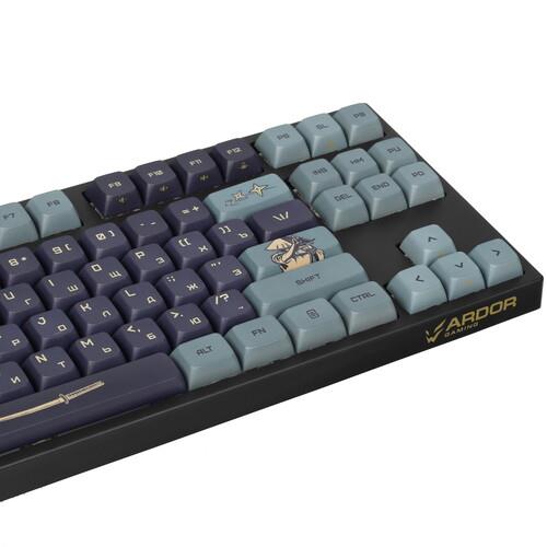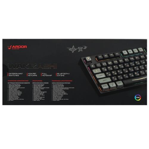 Клавиатура ARDOR GAMING Wakizashi [AG-ZD-87GT-XDA-HS-B] оформлена в самурайской тематике и отличается компактными размерами. Модель оснащена 87 клавишами с механическими переключателями Gateron Mint. Они отличаются укороченным ходом 2 мм и смазанными стабилизаторами, благодаря чему обеспечивается легкое нажатие и плавное срабатывание. Функции клавиш можно программировать. Система HotSwap позволяет менять переключатели.