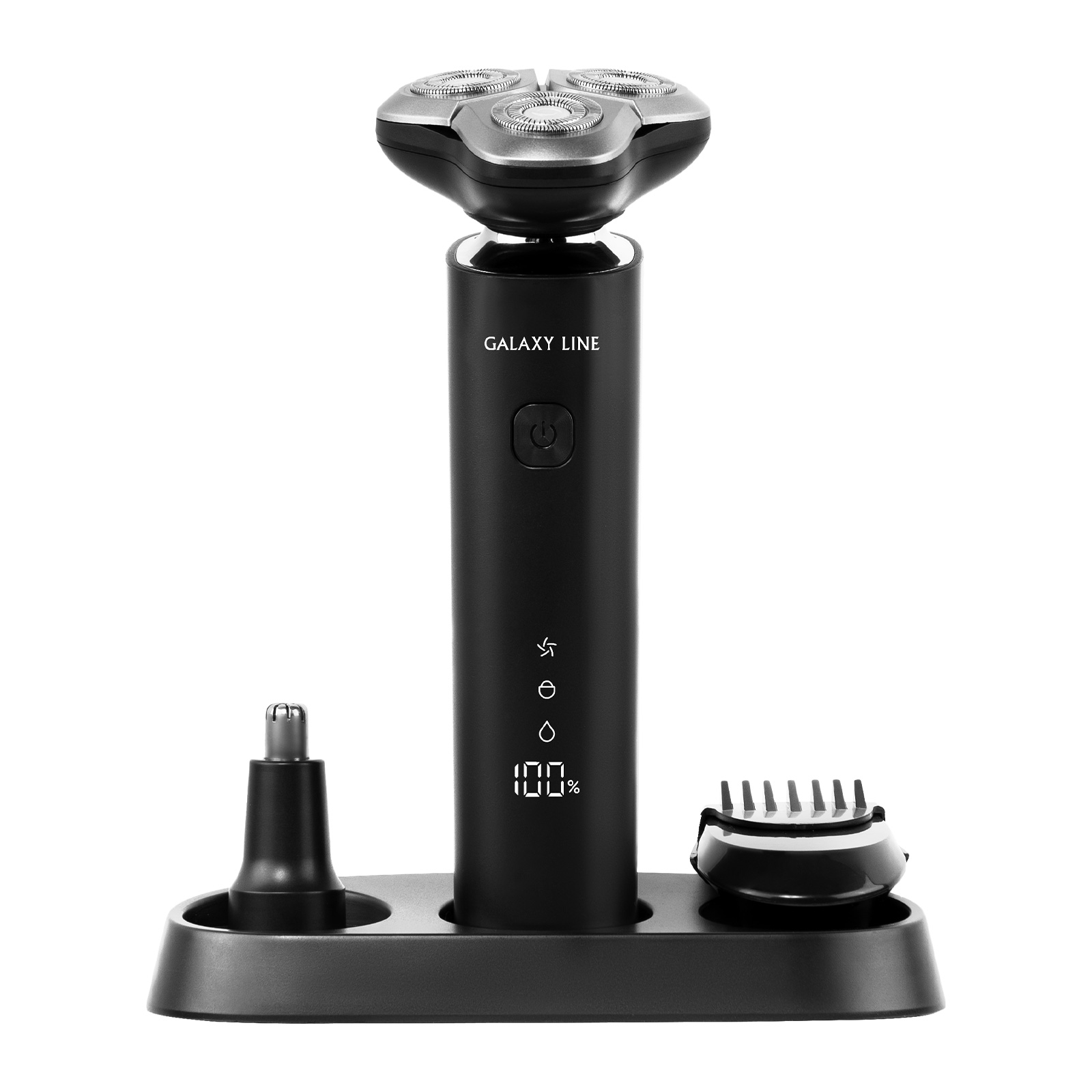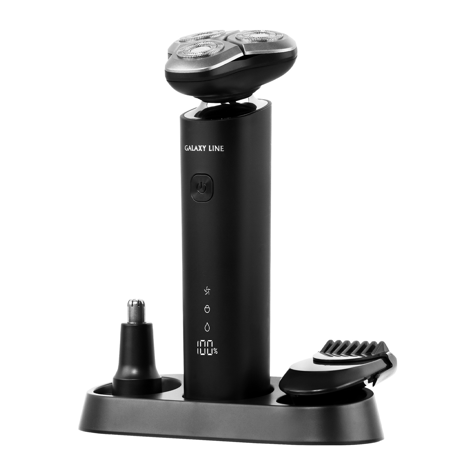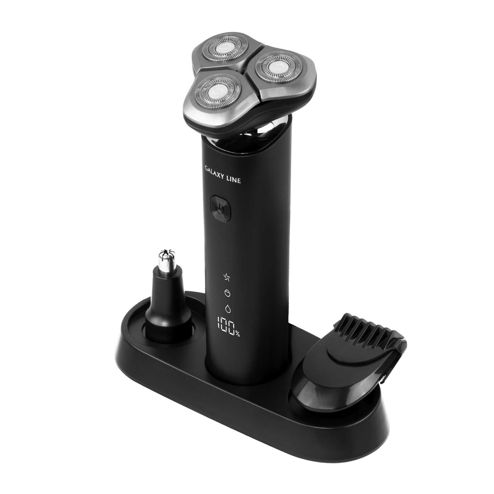 В комплекте: Щётка для очистки 1 шт., Защитный колпачок 1 шт., USB-кабель 1 шт., Насадка-триммер для носа 1 шт., Насадка-триммер для висков, бороды и усов 1 шт., Подставка для зарядки 1 шт., Руководство по эксплуатации 1 экз., Потребительская тара 1 шт.