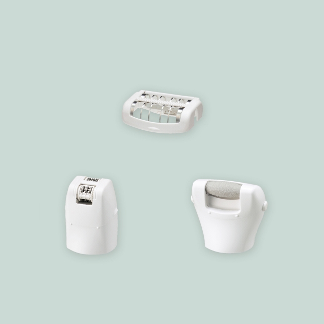 Набор из 6 предметов (эпиляционная насадка для ног и рук, маленькая насадка для эпиляции, насадка для деликатной эпиляции, насадка для стоп, чехол для хранения, чистящая щеточка)