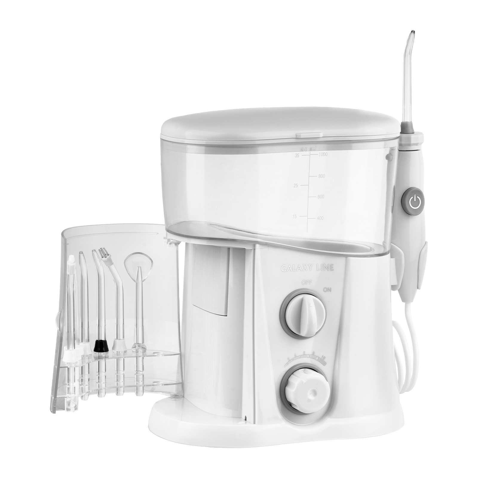 Съемный резервуар для воды, мл: 1000Регулятор потока: даКоличество насадок, шт: 7Вид насадки ирригатора:Стандартная насадка 3 штПародонтологическая насадкаОртодонтическая насадкаНасадка для чистки языкаНасадка для чистки зубного налета.Регулировка интенсивности потокаВлагозащита: IPX4Шланг 87 смМощность: 20 ВтДвойное напряжение 100 В - 240 В, 50 Гц / 60 ГцТаймер завершения чисткиМакс. частота пульсации 1800 импульсов в минутуМакс. давление струи 870 кПаВращение насадки на 360°Габаритные размеры прибора 20*10,3*21,5 смОтсек для хранения насадок