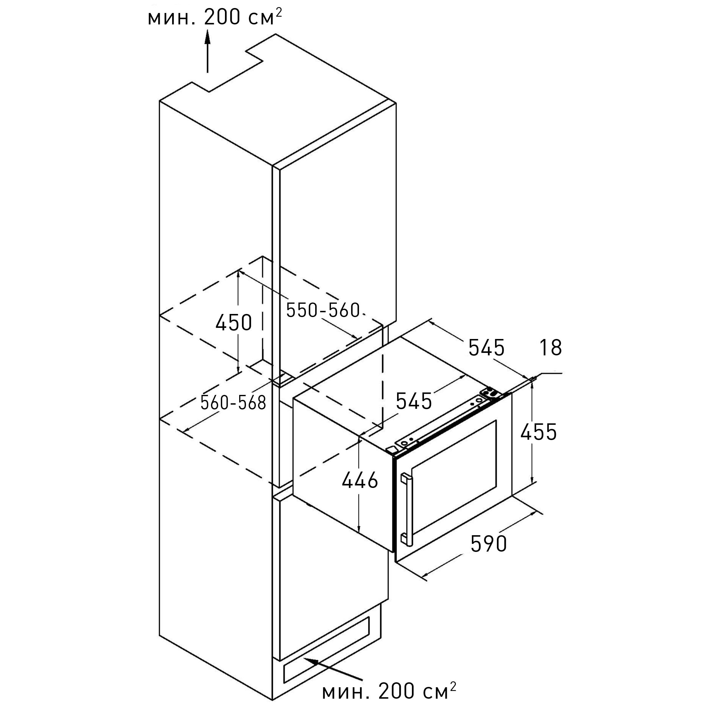 Размеры ниши для встраивания (ВхШхГ) (см)