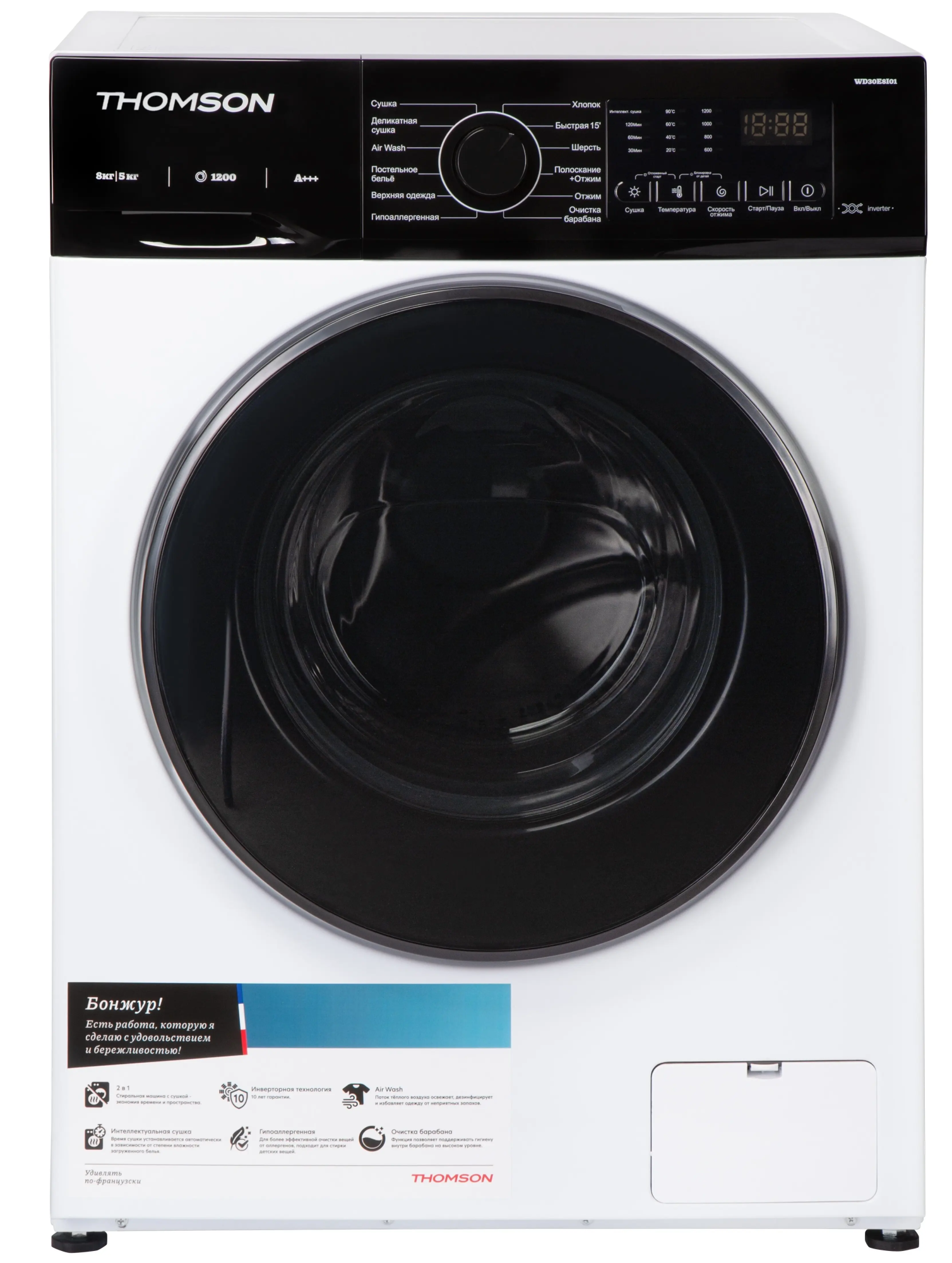 Стирально-сушильная машина THOMSON WD30E8I01 представляет собой инновационное решение для современного дома, объединяющее энергоэффективность, передовые технологии и удобство использования в одном устройстве.