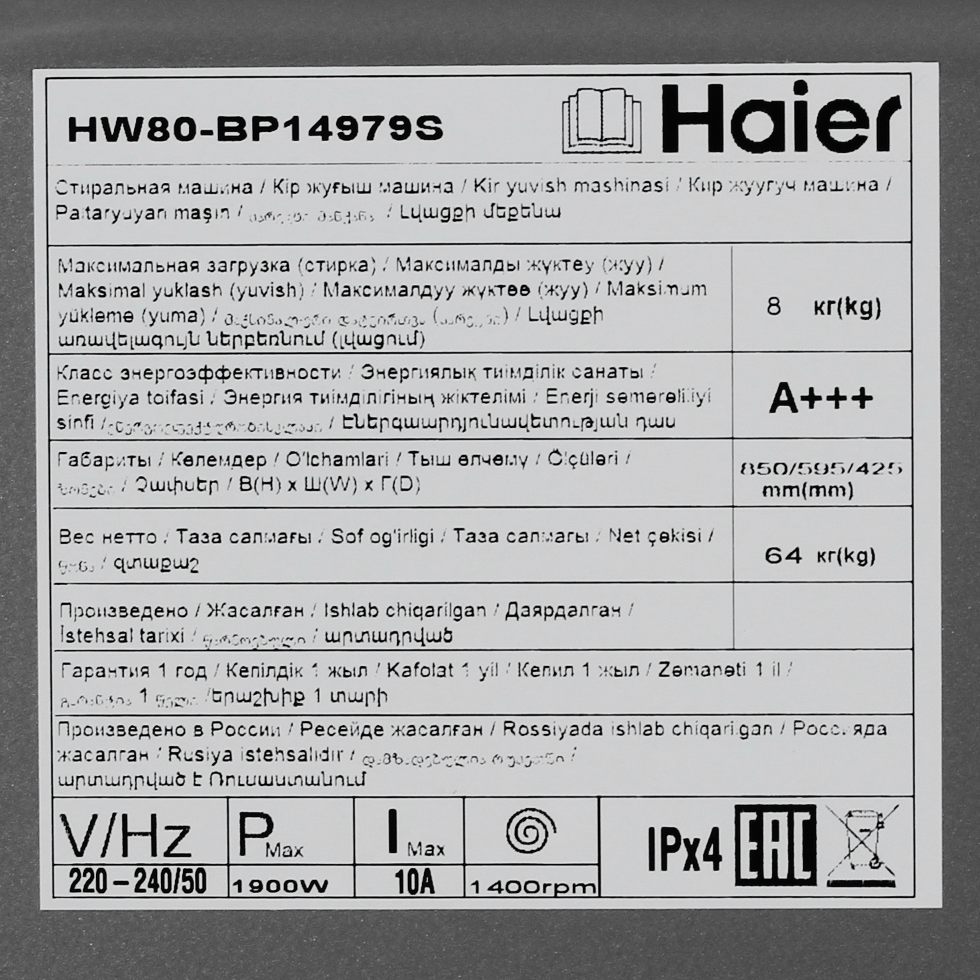 Гарантия от производителя подтверждает высокое качество и надежность стиральной машины Haier.