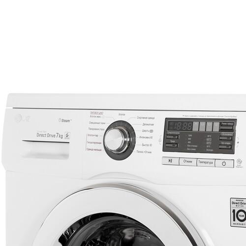 Стиральная машина LG F1296HDS3 с фронтальной загрузкой способна очищать сразу до 7 кг белья. Это значит, что в бак поместятся одновременно до 2 одеял или пуховиков. Для стирки и того, и другого машина имеет специальные программы. Всего она оснащена 13 режимами и опцией обработки выстиранного белья горячим паром.