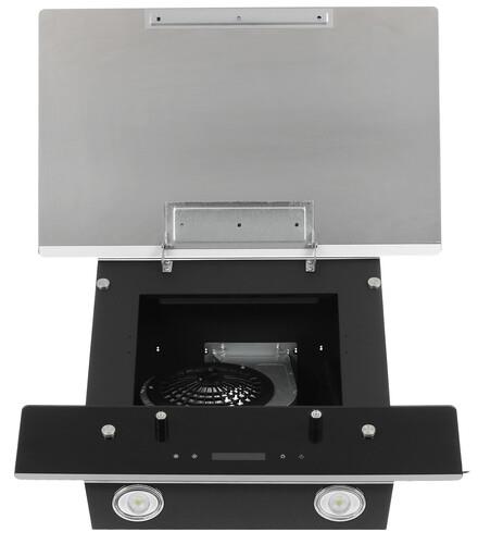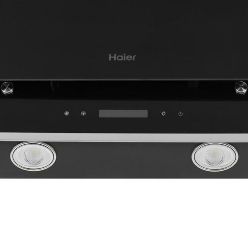 Вытяжка наклонная Haier HVX-W672GBX обладает стильным черным корпусом. Ребра прибора изготовлены из металла. Модель оснащена мотором мощностью 110 Вт, а производительность устройства достигает 700 м³/ч в режимах циркуляции и отведения воздуха. Регулировать скорость вращения вентилятора вытяжки можно в 3 положениях за счет сенсорной панели и дисплея. Благодаря жировому фильтру испарения и загрязнения не попадают внутрь зонта.