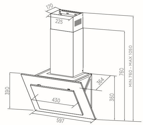 При монтаже следует учитывать ширину корпуса вытяжки 59.7 см. В зависимости от установки Midea MH60AN300B поддерживает режимы «Отвод» и «Циркуляция». Первый вариант предполагает соединение вытяжки с системой вентиляции. В этом случае через отверстие вентиляции воздух выходит наружу, при этом, он заменяется на свежий. Когда такой возможности подключения нет, можно воспользоваться режимом «Циркуляция». Для него специально приобретается угольный фильтр, при помощи которого воздух очищается, после чего возвращается в помещение уже очищенным.