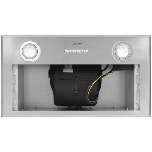 Вытяжка полновстраиваемая Midea MH60I370X в металлическом корпусе серебристого цвета обладает 2 светодиодными лампами мощностью 3 Вт. Они наполняют рабочую область ярким источником света, позволяя комфортно очищать поверхности и готовить пищу. Антивозвратный клапан предупреждает выброс удаленных загрязнений обратно в помещение. Для доступа к функционалу используется кнопочная панель управления.