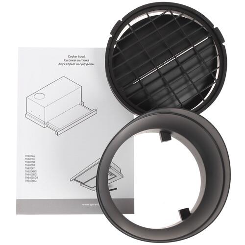 Оборудование Gorenje TH62E4X уверенно справляется с задачами циркуляции и отвода посторонних запахов. Спереди вытяжка дополнена двумя LED-лампами по 2.2 Вт для освещения рабочей области, что крайне удобно для кухни. Также имеется простая кнопочная панель и плотный жировой фильтр. Прибор можно дополнить угольным фильтром.
