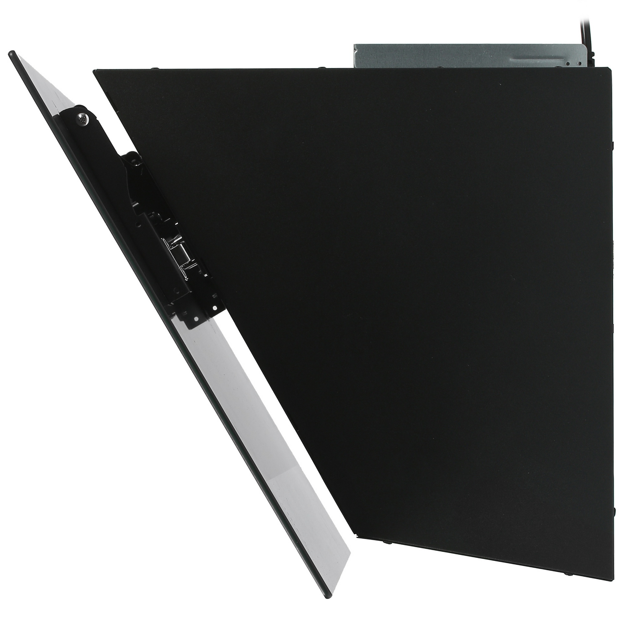 Модель оснащена двумя светодиодными лампами мощностью 1.5 Вт каждая. Они обеспечивают яркое и экономичное освещение рабочей поверхности. Антивозвратный клапан предотвращает попадание запахов из вентиляционной шахты обратно в кухню. Также имеется кабель питания с вилкой для удобного подключения.