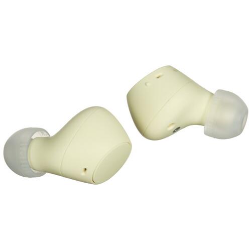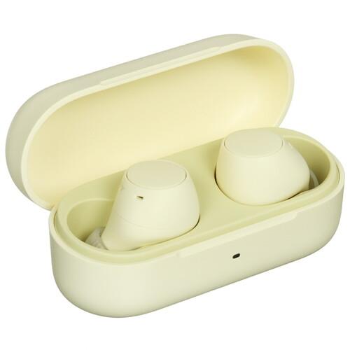 Желтые наушники TWS Sony WF-C510 со степенью защиты IPX4 позволят пользоваться ими во время моросящего дождя или заниматься в них спортом, не опасаясь попадания в них пота. При попадании пыли наушники могут пострадать.