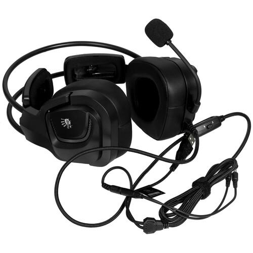 Проводная гарнитура A4Tech Bloody G575P имеет встроенный контролер, регулятор громкости и кнопку отключения микрофона. RGB-подсветка позволяет создать подходящую атмосферу. Мягкие 3D-амбушюры и сдвоенное оголовье делают наушники практически незаметными в течение нескольких часов. За качество звука отвечают мембранные излучатели диаметром 50 мм. В комплекте есть кабель 2 м для подключения к источнику сигнала. Тканевая оплетка и позолоченный штекер обеспечивают дополнительную защиту элементов от повреждений.