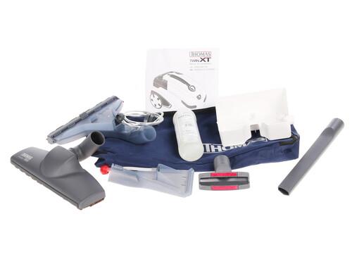 Пылесос Thomas Twin XT – это многофункциональная модель, которая поможет за считанные минуты очистить поверхности от загрязнений. Бело-голубой корпус оснащен двумя парами колес: передние обеспечивают преодоление порогов и неровностей, а задние – хорошую маневренность. Хранить пылесос можно в двух положениях: вертикальном или горизонтальном. Thomas Twin XT обладает сухим и влажным режимами уборки, благодаря чему можно очистить от пыли и вымыть не только пол, но и ковры, окна. Для влажной уборки предусмотрен съемный резервуар для моющих средств.