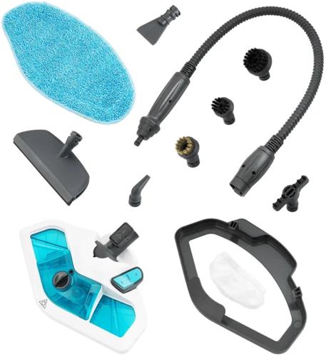 гибкий удлиняющий шланг, документация, рамка для ковра, скребок, тряпка для отпаривания, тряпка для пола,удлинительная ручкаещё