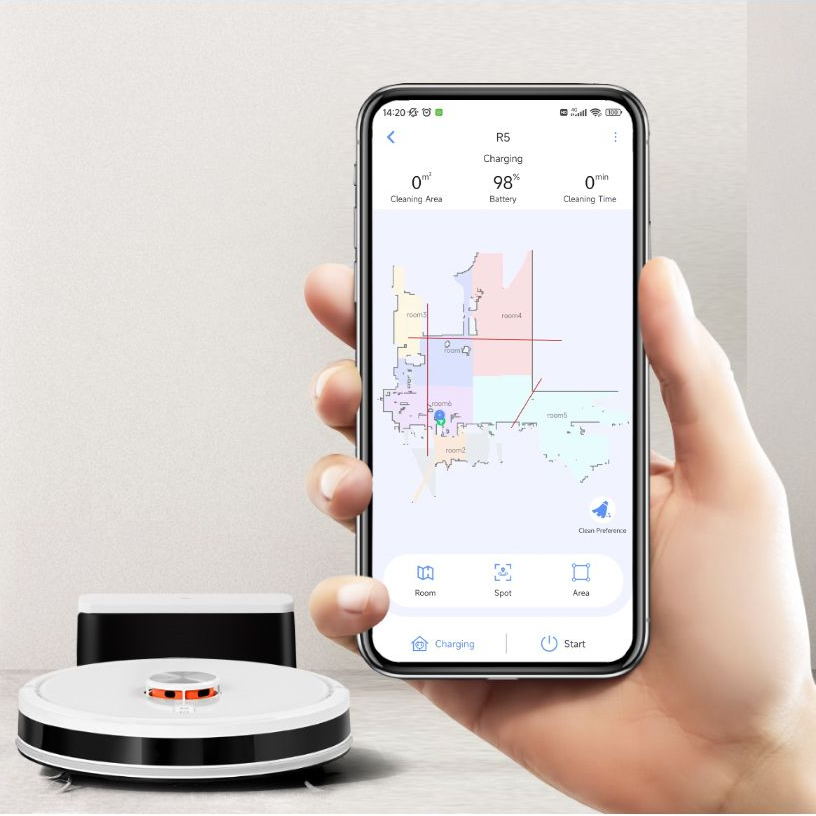 Высокая мощность всасывания — 5000 Па —позволит быстро и эффективно собрать пыль, грязь, мелкий мусор и шерсть домашних животных. Одной из ключевых особенностей Lydsto R5 является функция автоматической подзарядки. Это позволяет пылесосу продолжать уборку непрерывно, возвращаясь на базу лишь для подзарядки. В сочетании с интеллектуальной навигацией, которая позволяет устройству легко обходить препятствия и составлять оптимальный маршрут, это гарантирует превосходное качество сухой и влажной уборки.