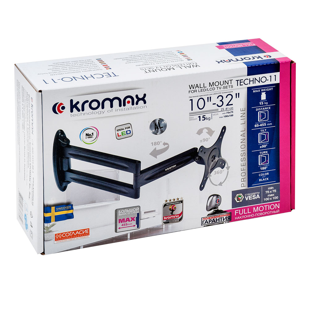 Диагональ ТВ: 10" - 32"