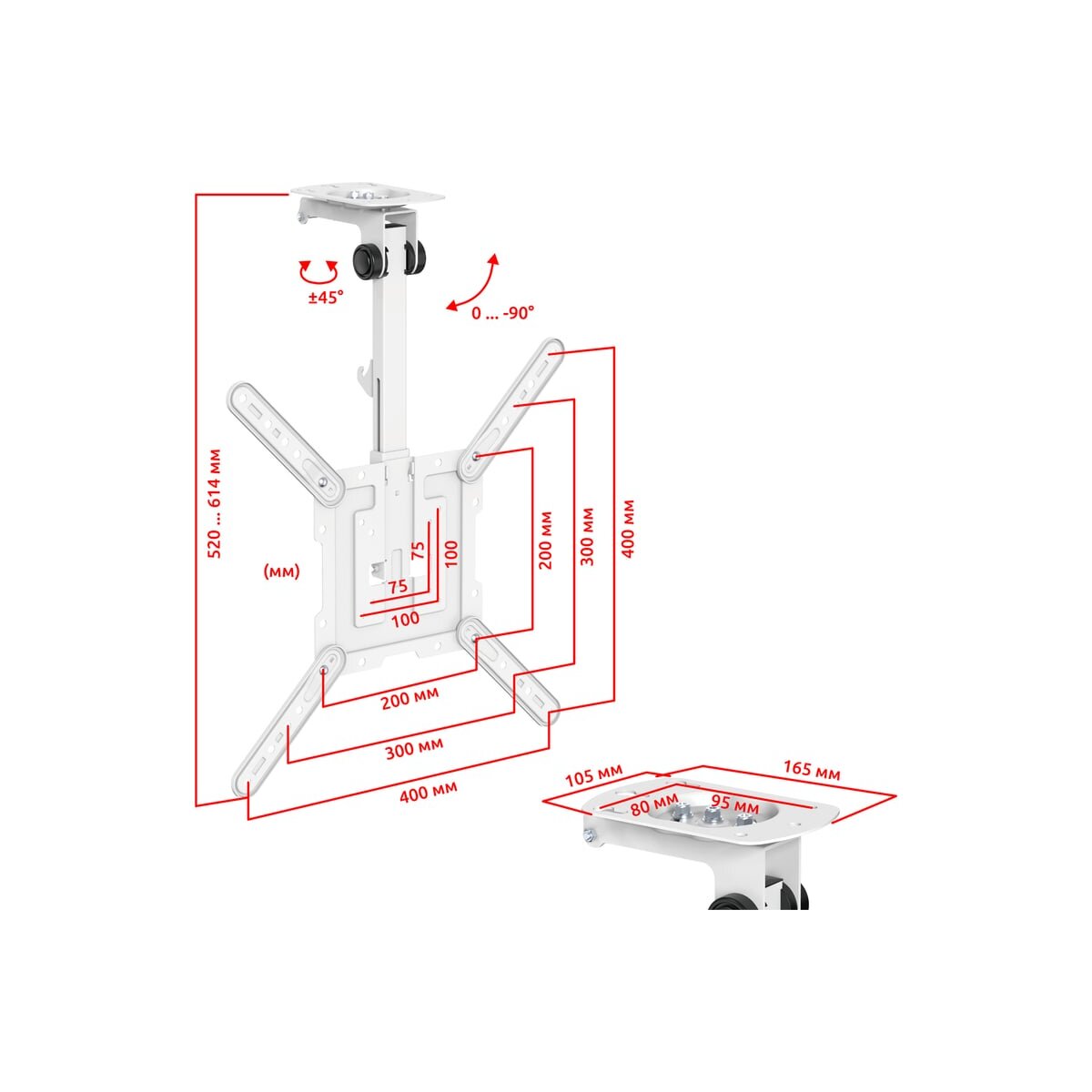 Достоинством кронштейна LCD3440CBW WHITE является прочная конструкция из ABC пластика и стали. Это преимущество обеспечит сохранность вашей панели. Крепкий и прочный, при этом элегантный кронштейн станет прекрасным дополнением домашнего светлого интерьера, не в зависимости от того , где вы разместите кронштейн: на кухне или офисе под полкой, на потолок в любом помещении, под мансардой и т.д. Для поворота телевизора или монитора, вам не нужно использовать дополнительных приспособлений или прилагать усилия. Вы сможете повернуть ТВ-панель или монитор лёгким движением руки, при этом телевизор или монитор зафиксируется в настроенном положении. Система фиксации и складывания кронштейна облегчит использование нашего продукта в быту.