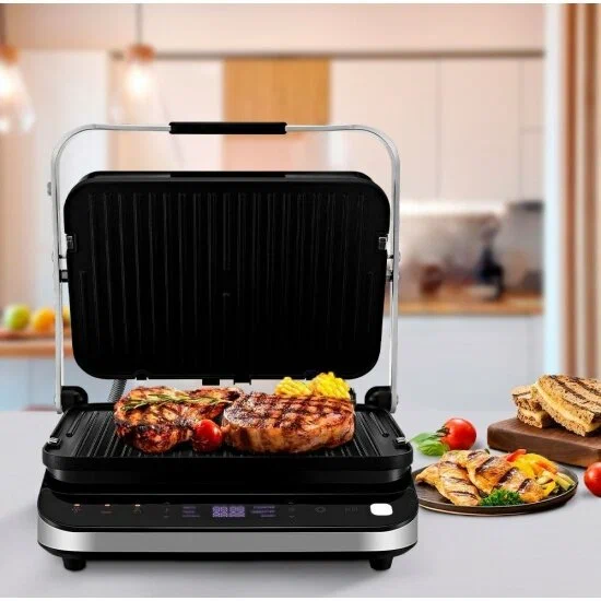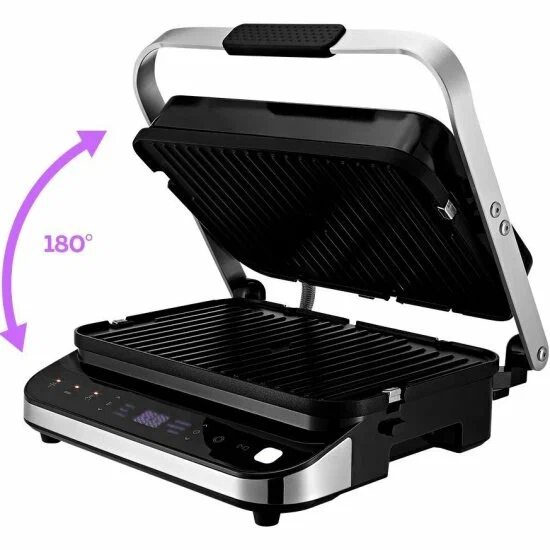 антипригарное покрытие, контактный гриль, поддон для сбора жира, съемные пластины, раскрытие на 180°, съемная жарочная поверхность