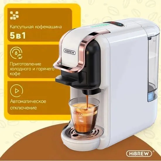 Капсульная кофемашина 5 в 1 HiBREW AC-514K. Вам больше не нужно идти в кафе, когда хочется бархатистого, ароматного кофе. С HiBREW вы можете легко приготовить его дома! Также выбирайте объем чашки: маленькая – 150 мл и большая – 250 мл.