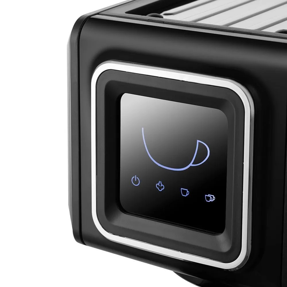 На панели управление предусмотрен выбор приготовления одной или двойной порции эспрессо, а также настройка необходимого объёма порции. Кнопка «Вкл/Выкл» включает и отключает кофеварку. Кнопка «Пар» включает и отключает нагрев бойлера для подачи пара.Мощность1250 ВтЁмкость резервуара для воды1,5 лДавление15 барДлина шнура0,9 мРазмер устройства120 х 319 х 297 ммРазмер упаковки356 х 168 х 376 ммВес нетто4,2 кгВес брутто5,0 кг