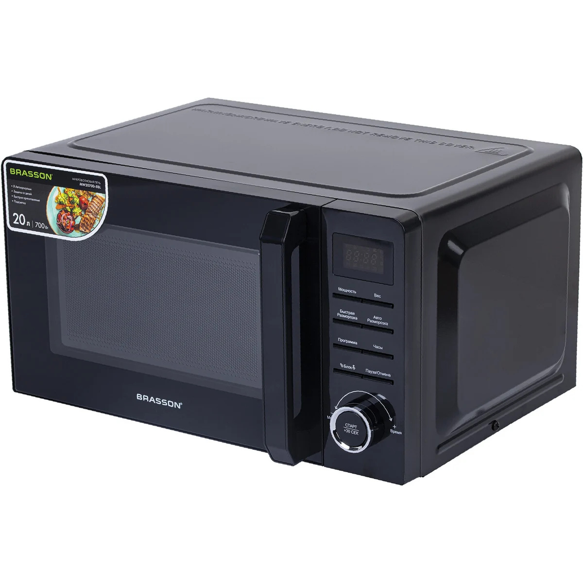 Микроволновая печь BRASSON MW2070D-8BL – компактная и мощная микроволновка черная объемом 20 литров и мощностью 700 Вт, которая станет незаменимой техникой для кухни дома и в офисе.