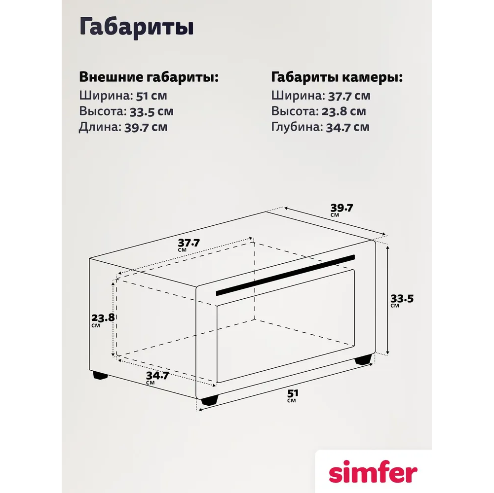 Верхний + нижний нагрев, Верхний нагрев, Нижний нагрев