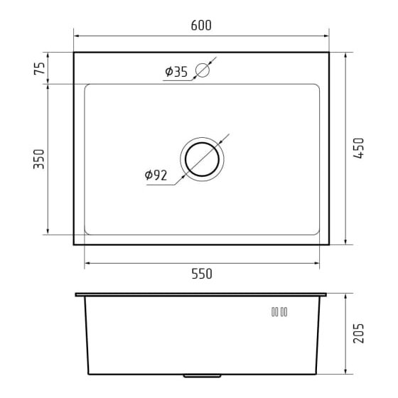 Мойка комплектуется оригинальной сливной арматурой с ситечком и пробкой. Сливная арматура без дополнительных отводов для стиральной или посудомоечной машин. Сливная арматура отдельно от мойки не продается.