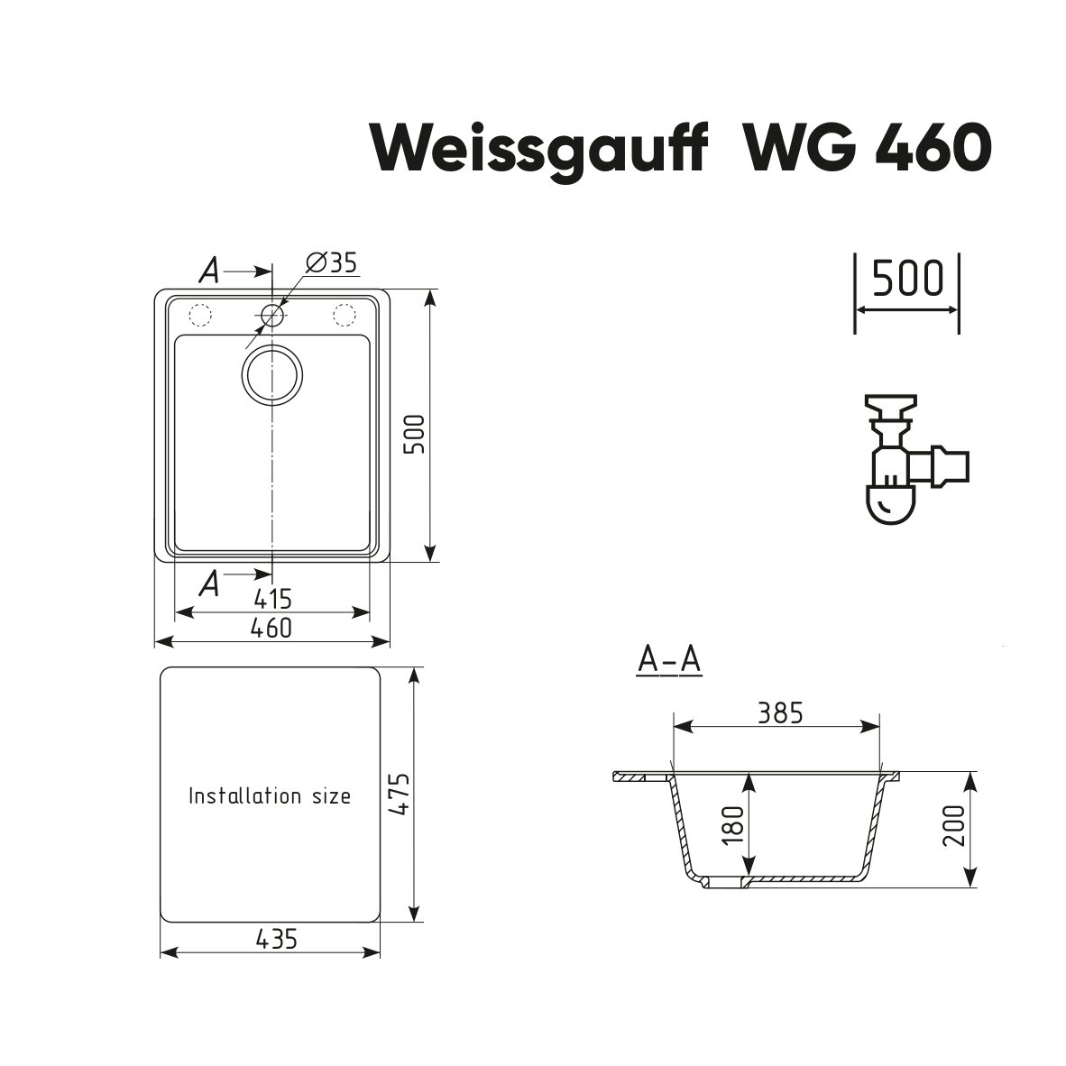 Габариты мойки, мм:460 х 500 х 200