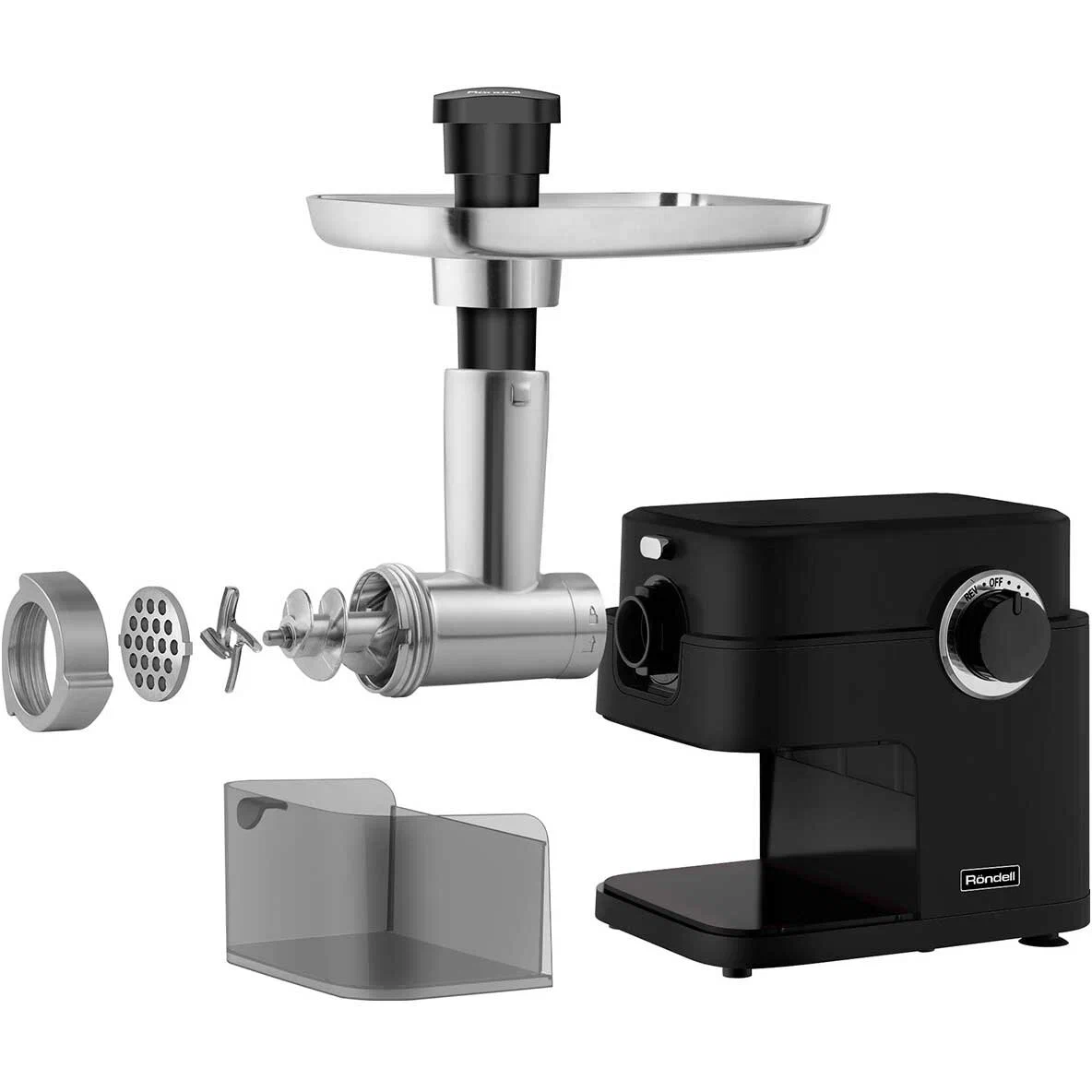 Технические характеристикиБрендRondellЦвет товарачерныйНоминальная мощность2000 ВтМаксимальная мощность (при блокировке мотора)2000 ВтСистема реверсаестьОсобенностизащита от перегрузки, отсек для хранения насадок, прорезиненные ножкиМатериал корпусапластикДлина сетевого шнура1 мНасадкиНасадкидиск для фарша, насадка для кеббе, насадка для приготовления колбасКоличество перфорированных дисков3