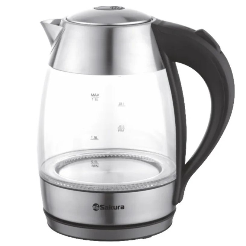 Чайник стеклянный электрический с подсветкой быстро вскипятит воду.