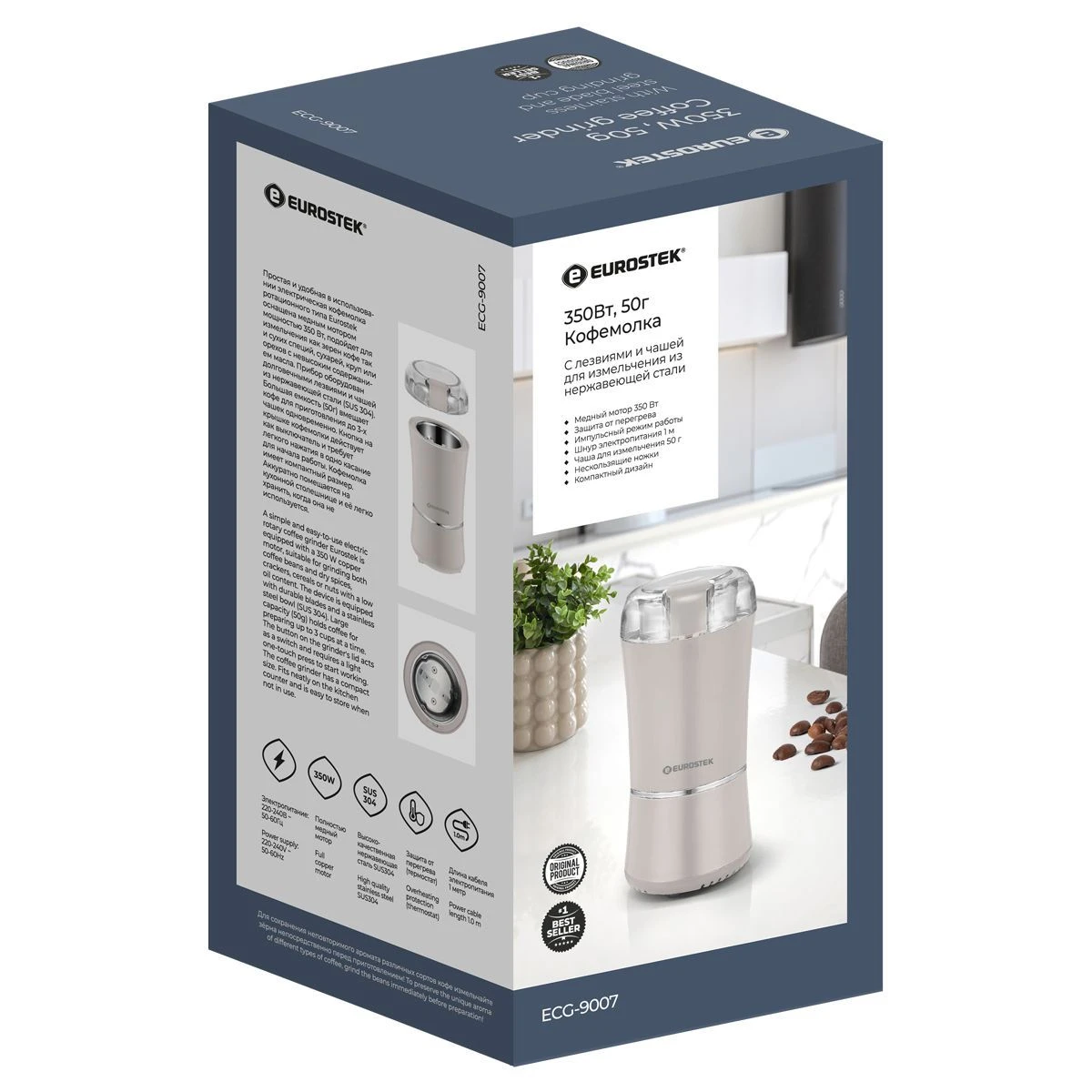 Кофемолка ECG-9007 проста и удобна в использовании. Подойдет для измельчения как зерен кофе так и сухих специй, сухарей, круп. мощность 350 Вт, объем 50 гр.