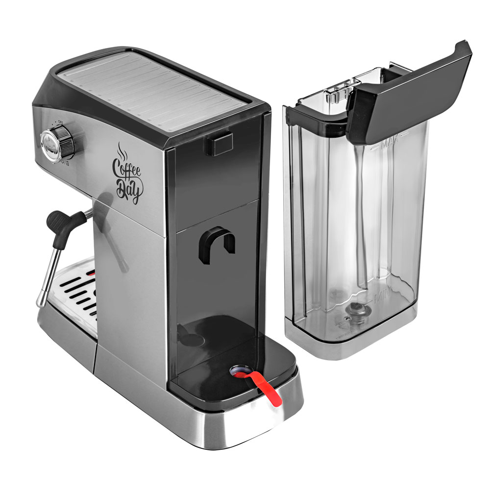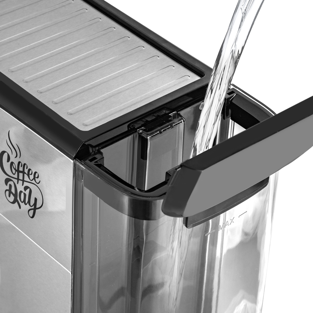 Тип кофеварки: рожковый, Тип используемого кофе: молотый, Подходит для приготовление эспрессо и капучино, Кнопочное управление + LED подсветка кнопок, Съемный бак для воды, Стимер для приготовления плотной молочной пены, Съемный моющийся поддон для сбора воды, Защита от перегрева и избыточного давления, Съемный фильтр на одну и две чашки из нержавеющей стали, Функция автоотключения, Площадка для подогрева чашек, Итальянская помпа высокой производительности, Функция предварительного смачивания кофе, LED дисплей, Стальной корпус кофеварки, Функция памяти объема напитка
