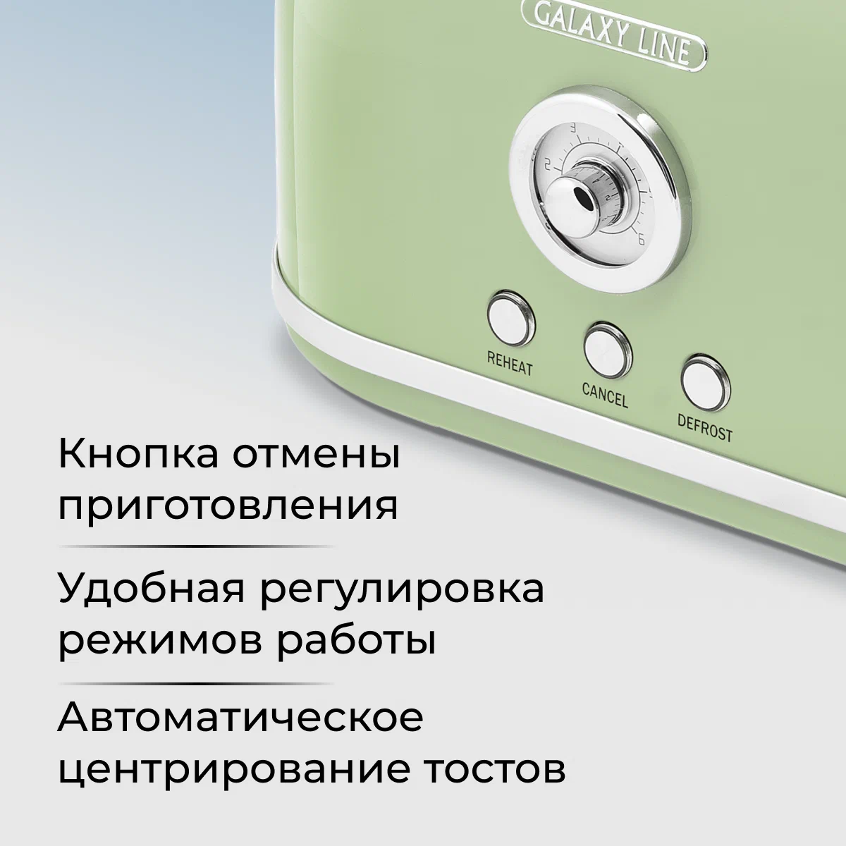 автоматическое центрирование тостов, кнопка отмены, регулировка степени обжаривания