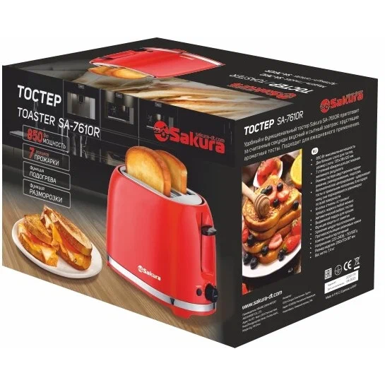 Основные характеристикиБрендSakuraЦвет товаракрасныйМощность850 ВтКоличество отделений2Количество тостов2Тип управлениямеханическоеДополнительные характеристикиОсобенностиотсек для шнураДополнительные функцииавтоматическое центрирование тостов, кнопка отменыВ комплектеподдон для крошекМатериал корпусаметалл, пластикДлина сетевого шнура75 см